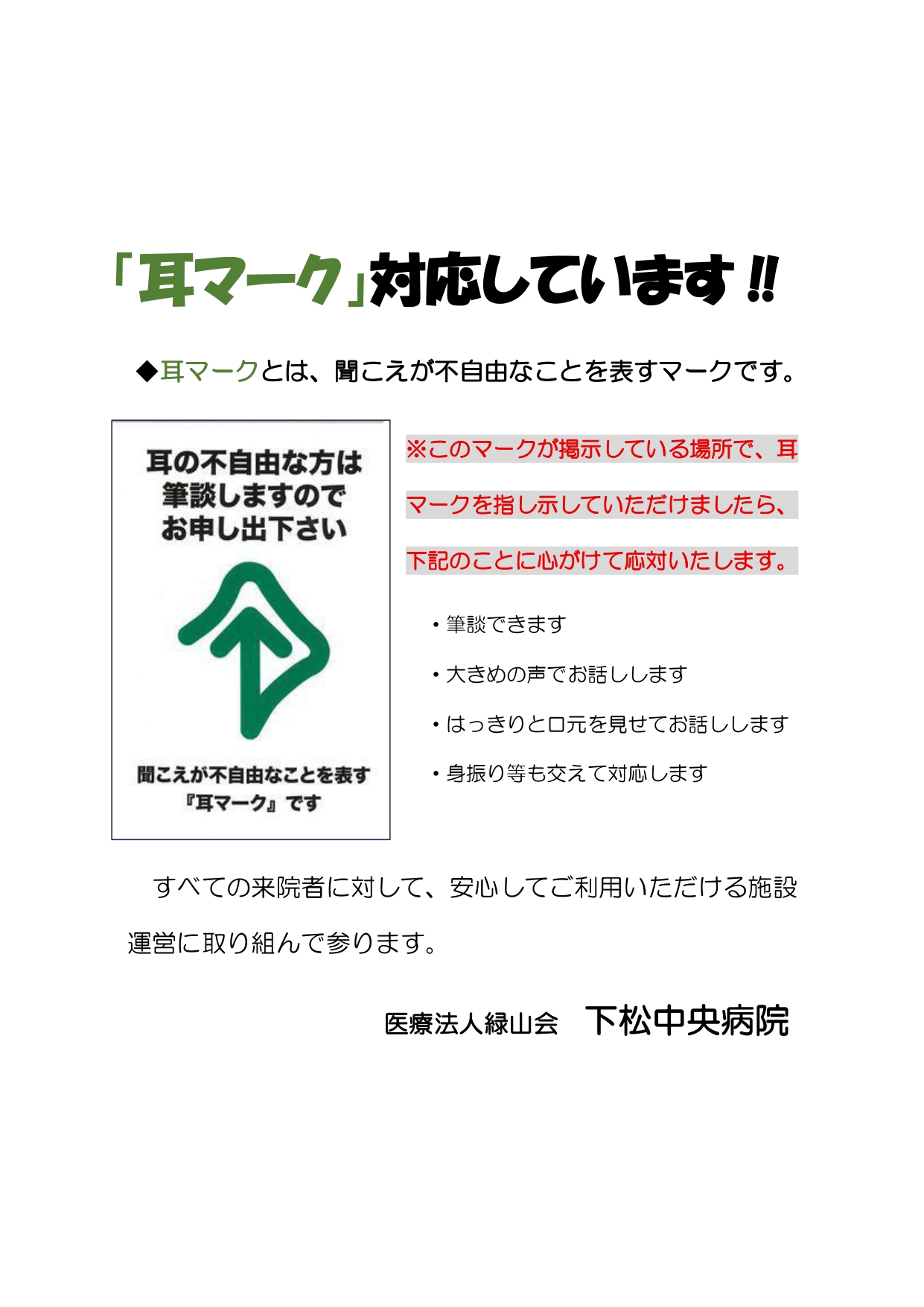 受付窓口等に『耳マーク』の表示をしております。