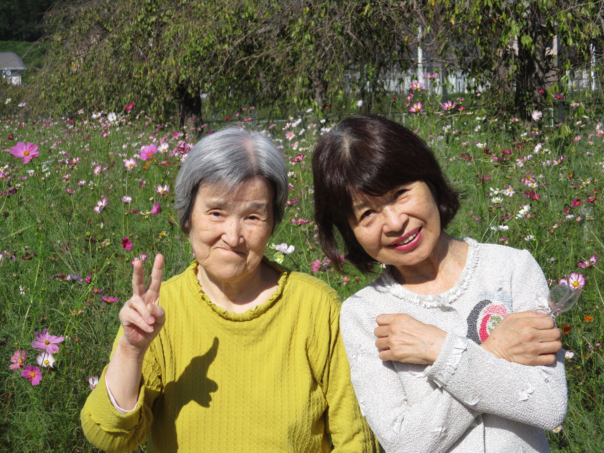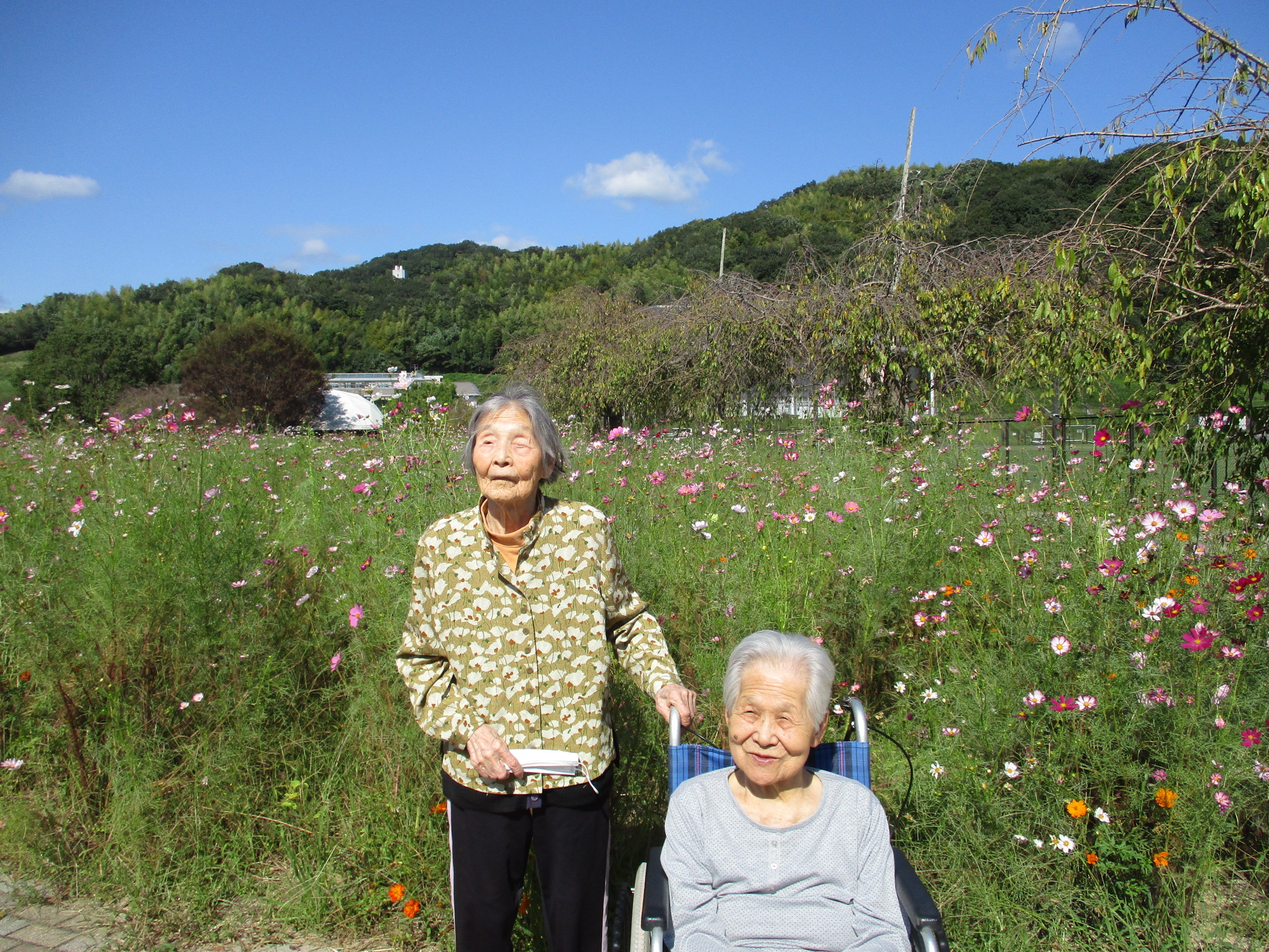 色とりどりの花に囲まれ、入居者の皆さまも笑顔がいっぱい