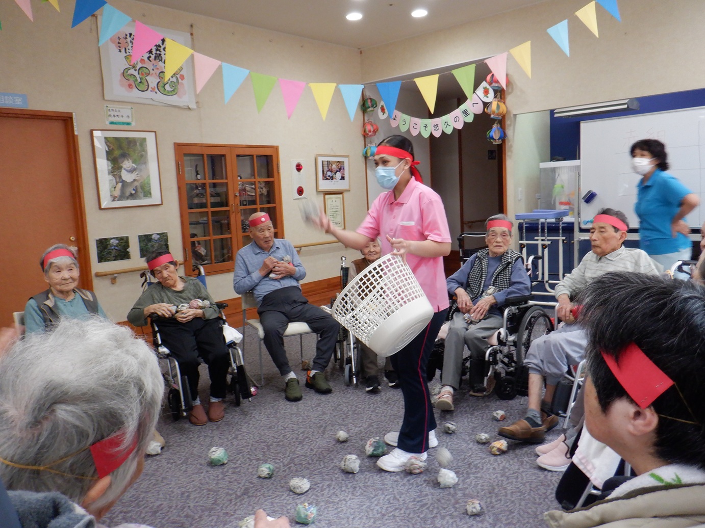 種目は玉入れ、ボール回し競争、お菓子釣り競争でした