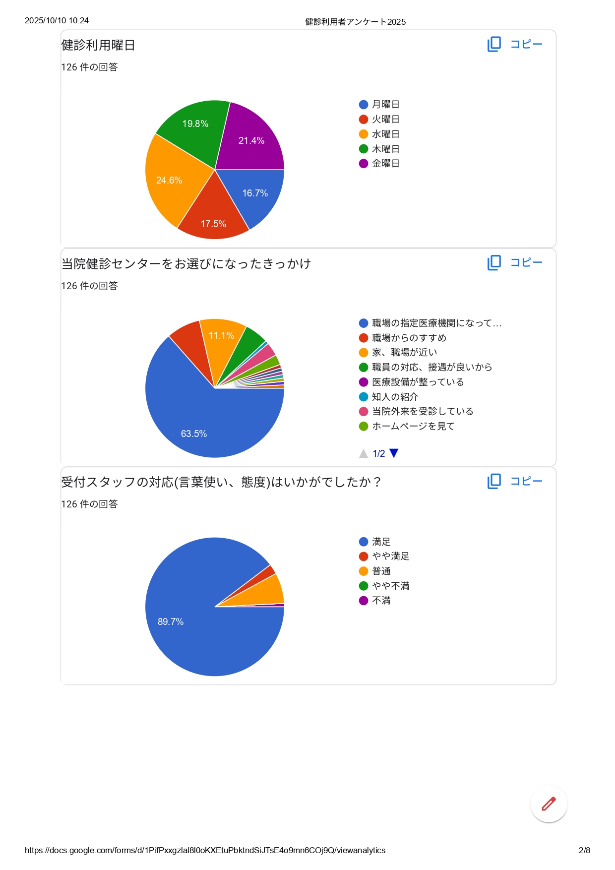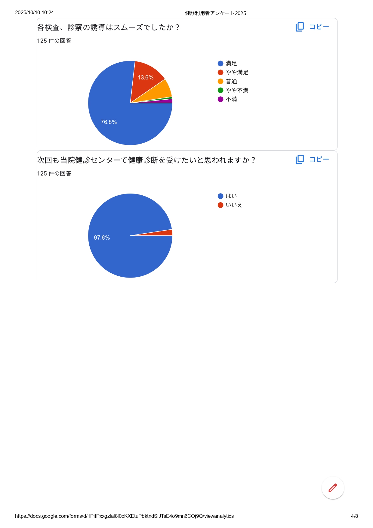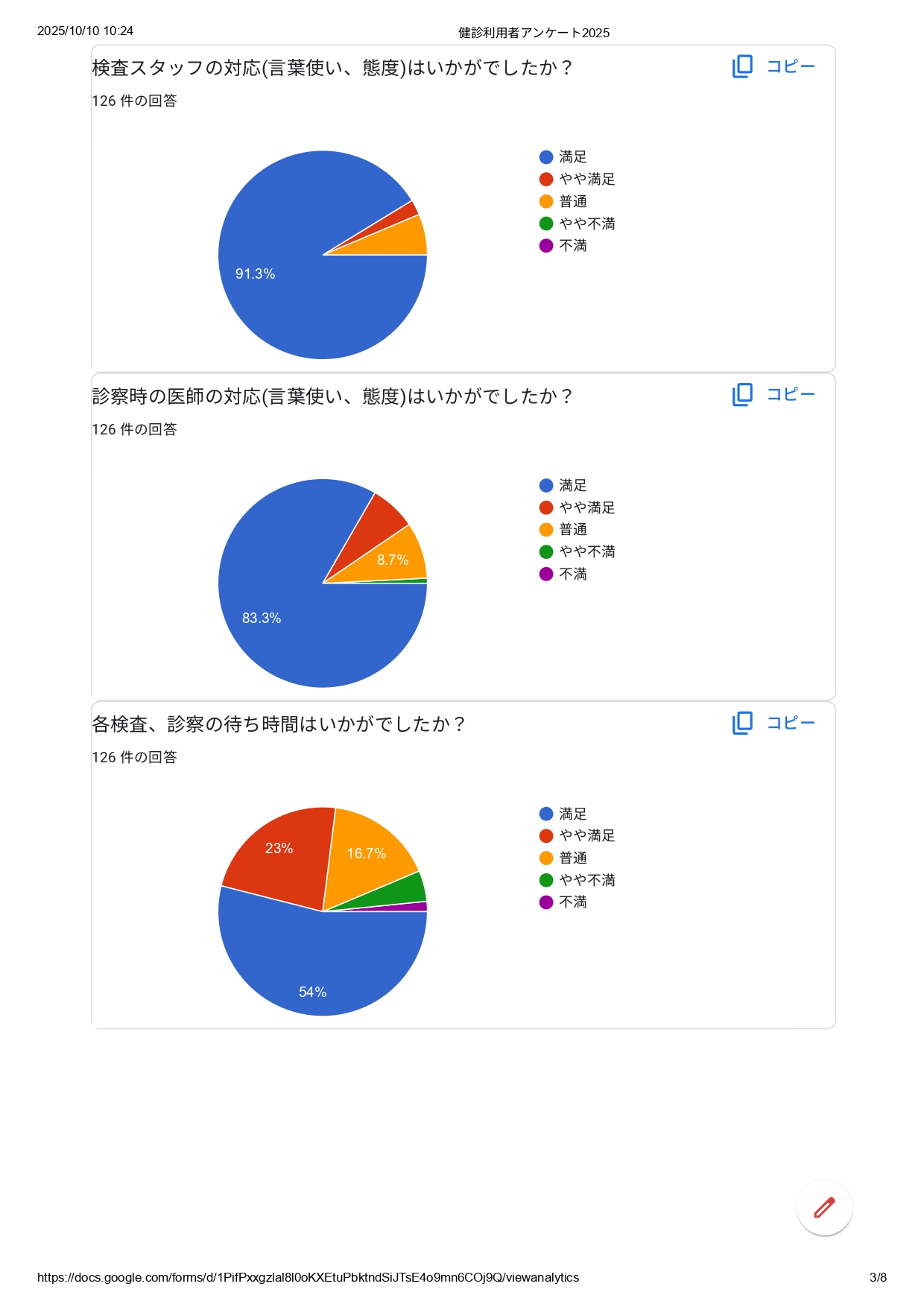受診者の皆様からご意見をお伺いし、より良い運営を行うため、アンケートを実施いたしました。