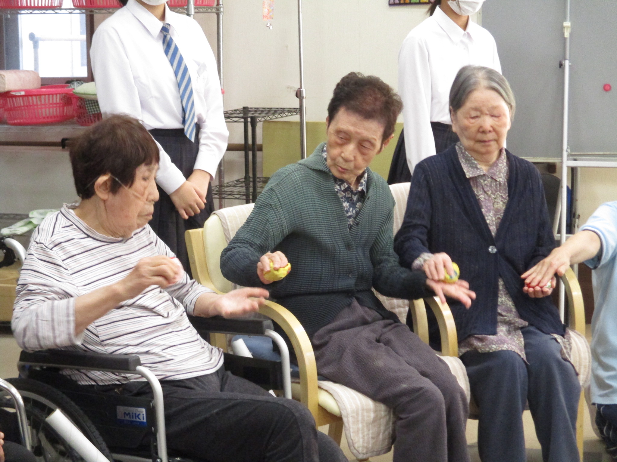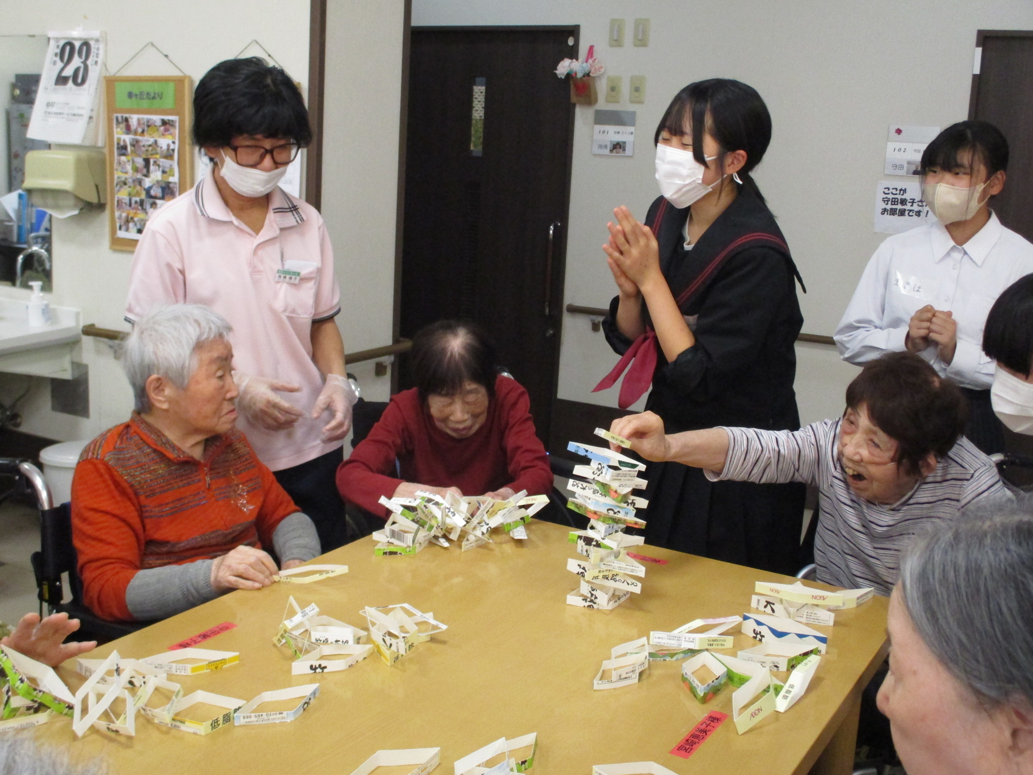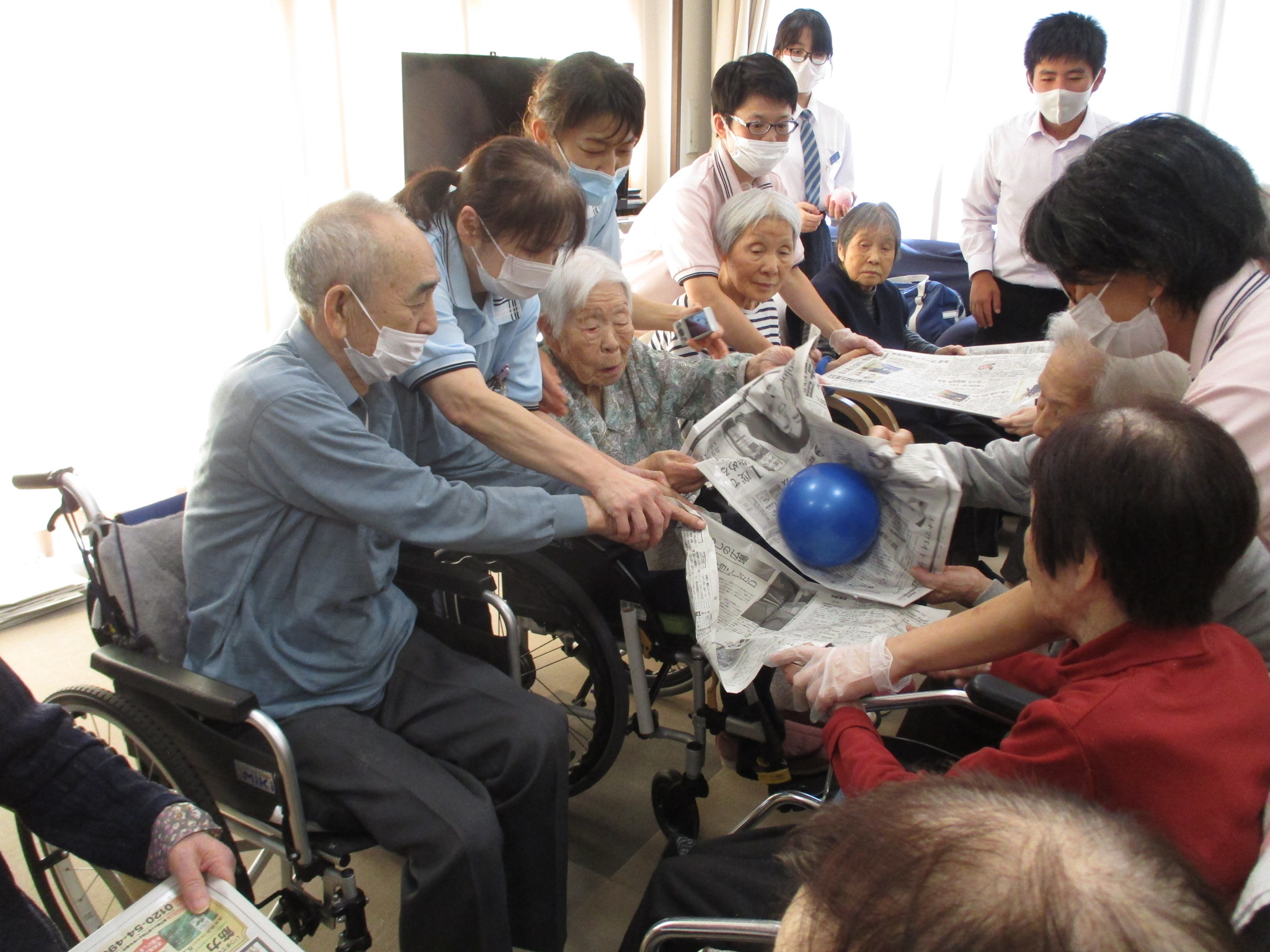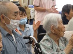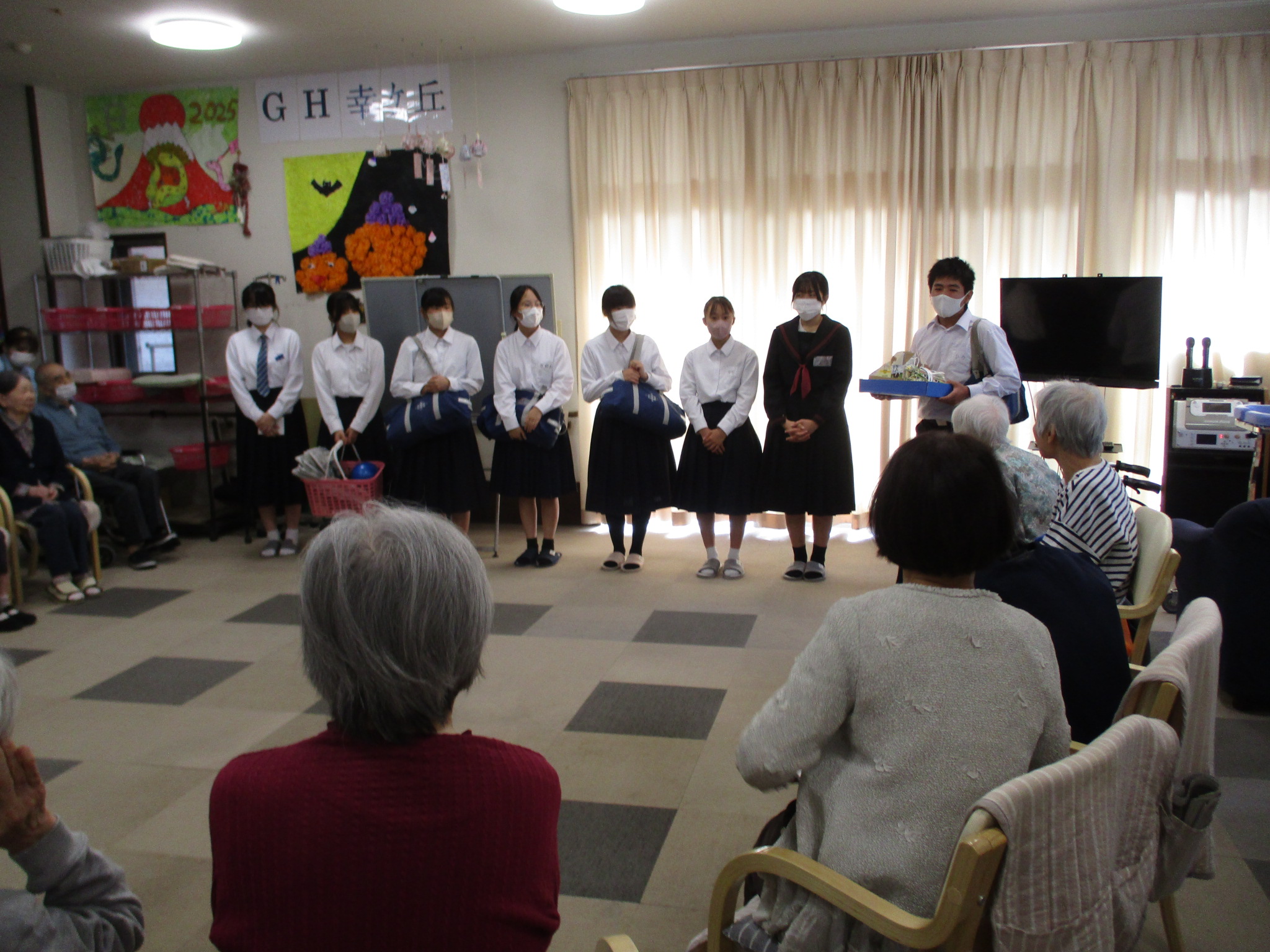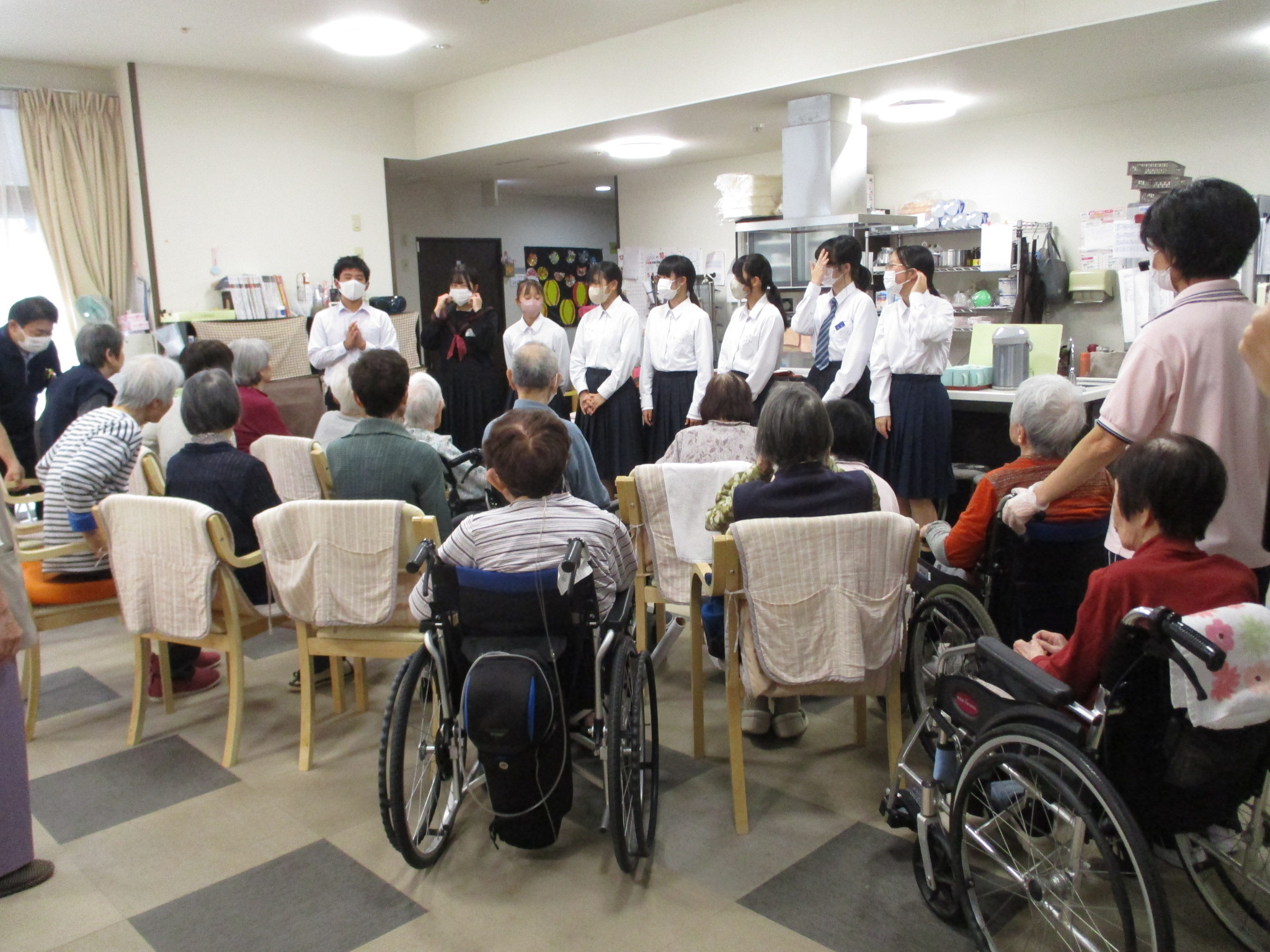 地域の中学生がボランティアとして来訪され、入居者の皆さまと一緒に歌やゲームを楽しみました
