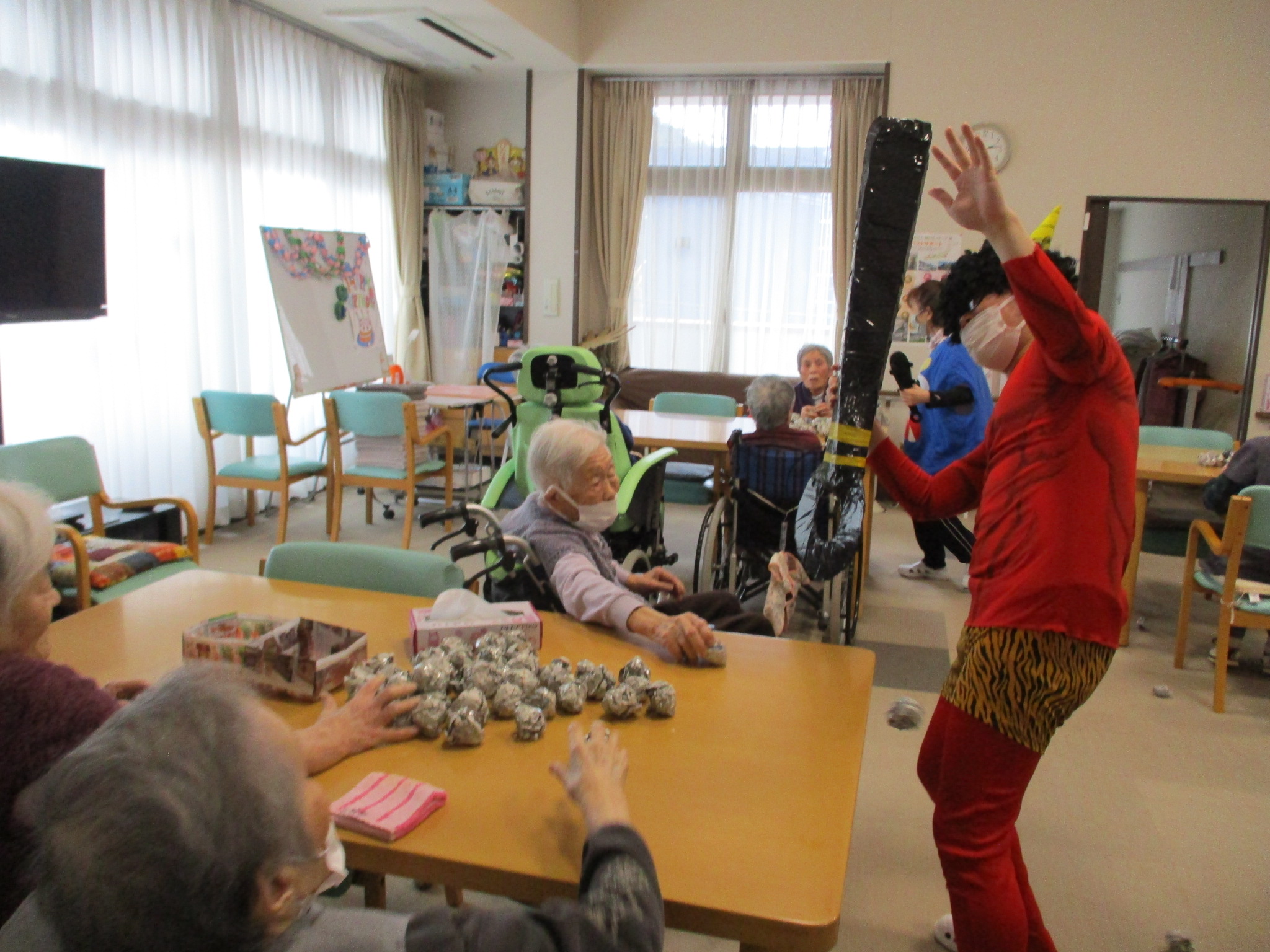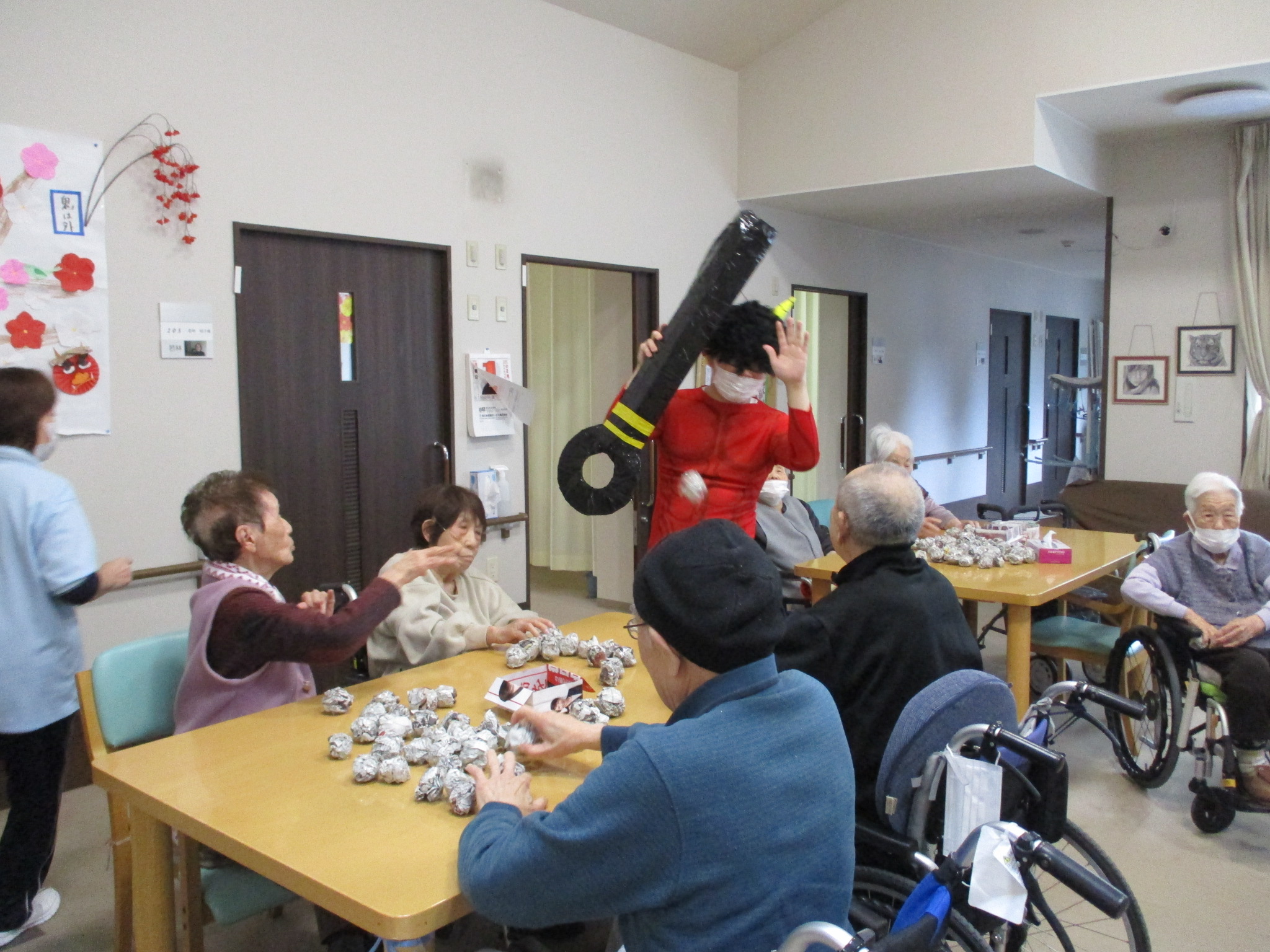 入居者様と一緒に節分の豆まきを行いました