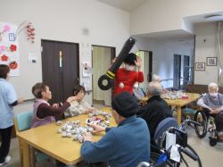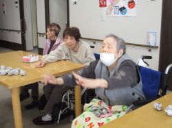 今回は安全に楽しんでいただけるよう、新聞紙で作った玉を使用して豆まきを実施しました。
