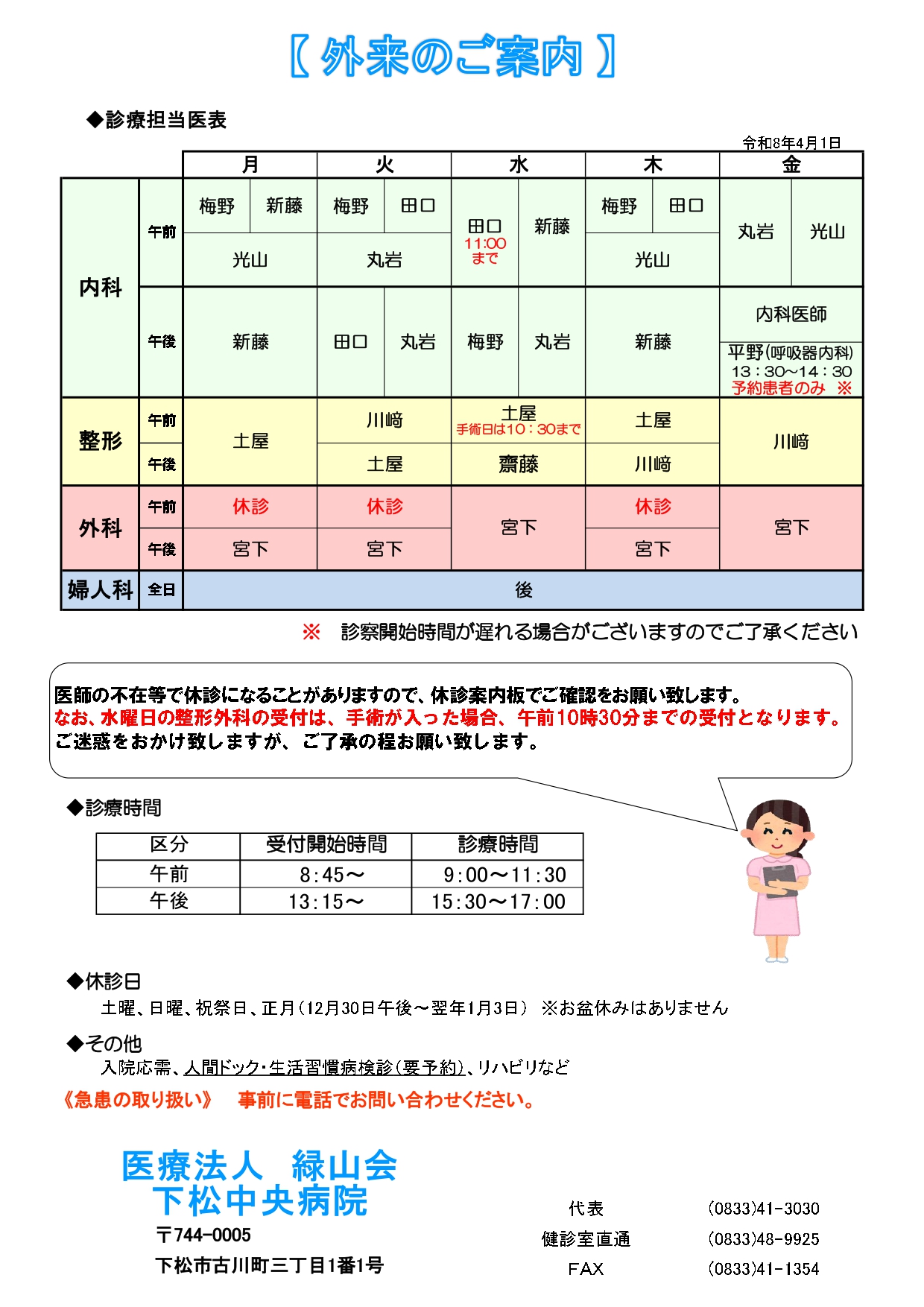 - 下松中央病院2026/04/01外来診療担当医表(令和8年4月)